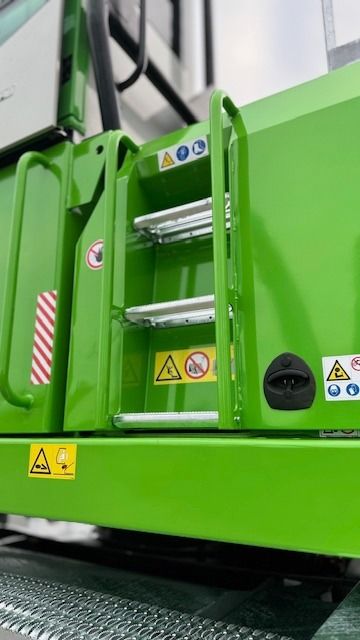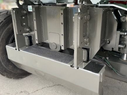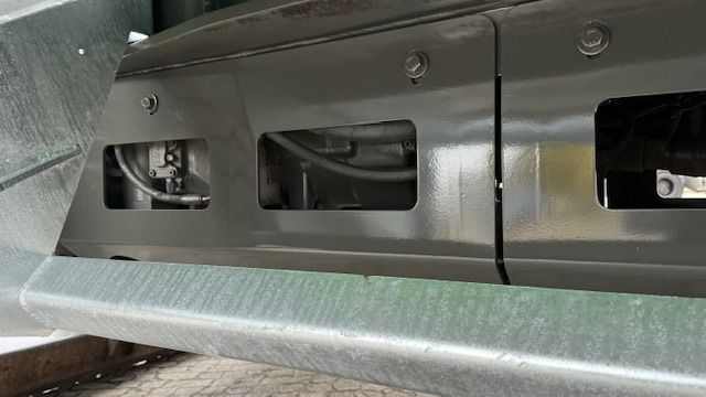 Rammschutz am und unter dem Unterwagen für Fahrantrieb mit integriertem Aufstieg und Werkzeugkasten