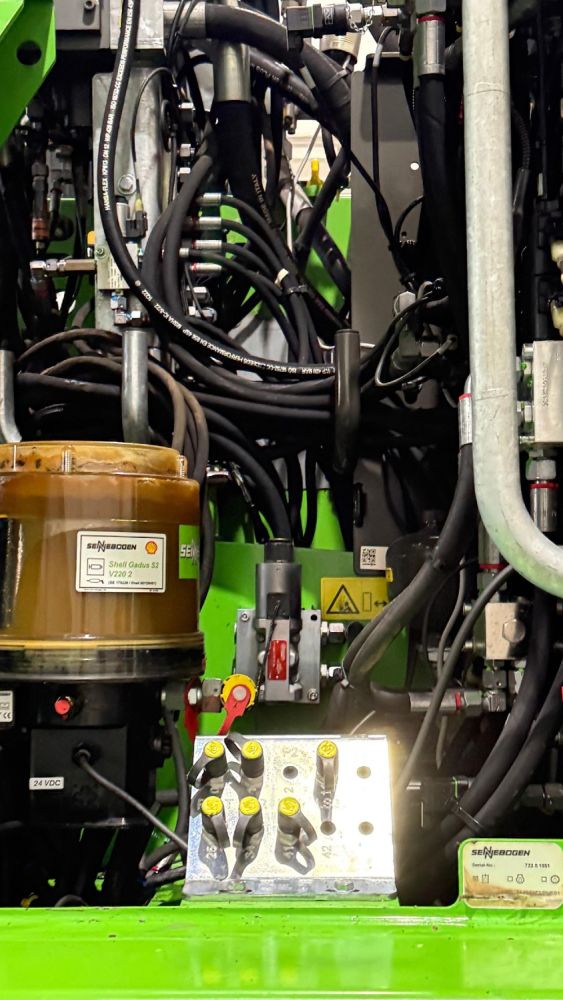 Automatische Zentralschmieranlage im Unterwagen.