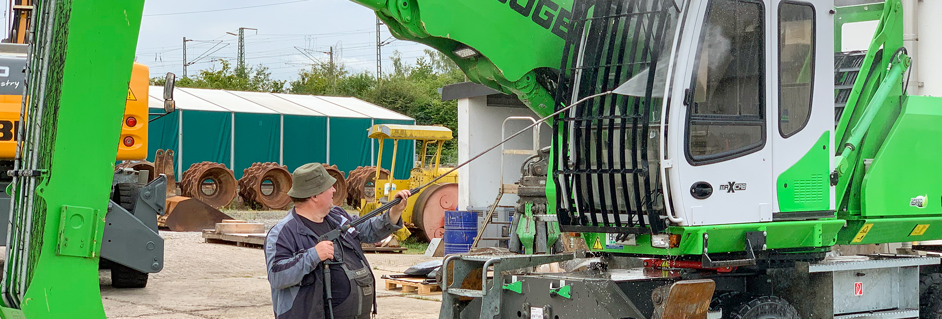 In unseren 4 hervorragend ausgestatteten Hallen arbeiten wir an Maschinen aus der Bau-, Industrie und Umweltbranche.